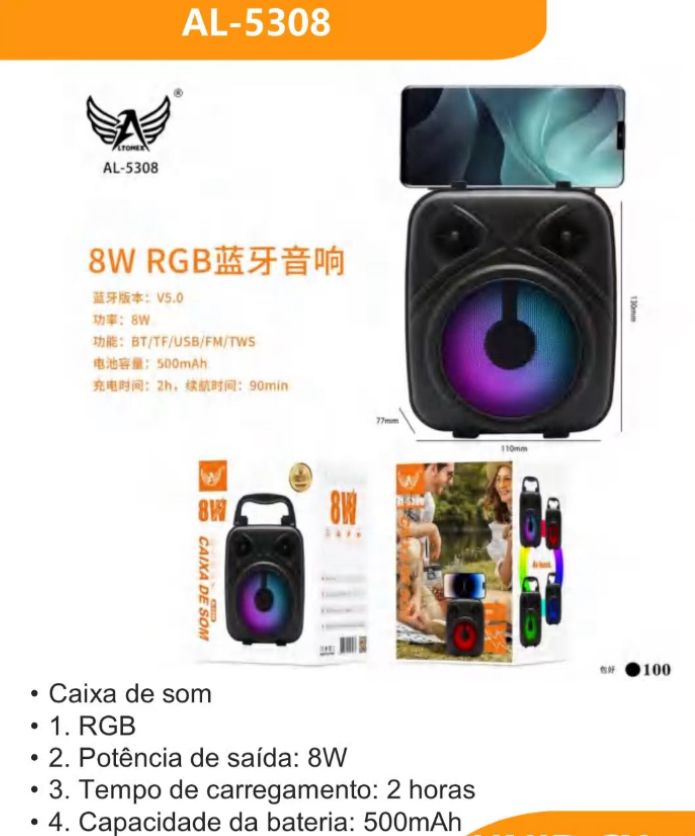 Caixa De Som Bluetooth 8W RGB Altomex AL-5308