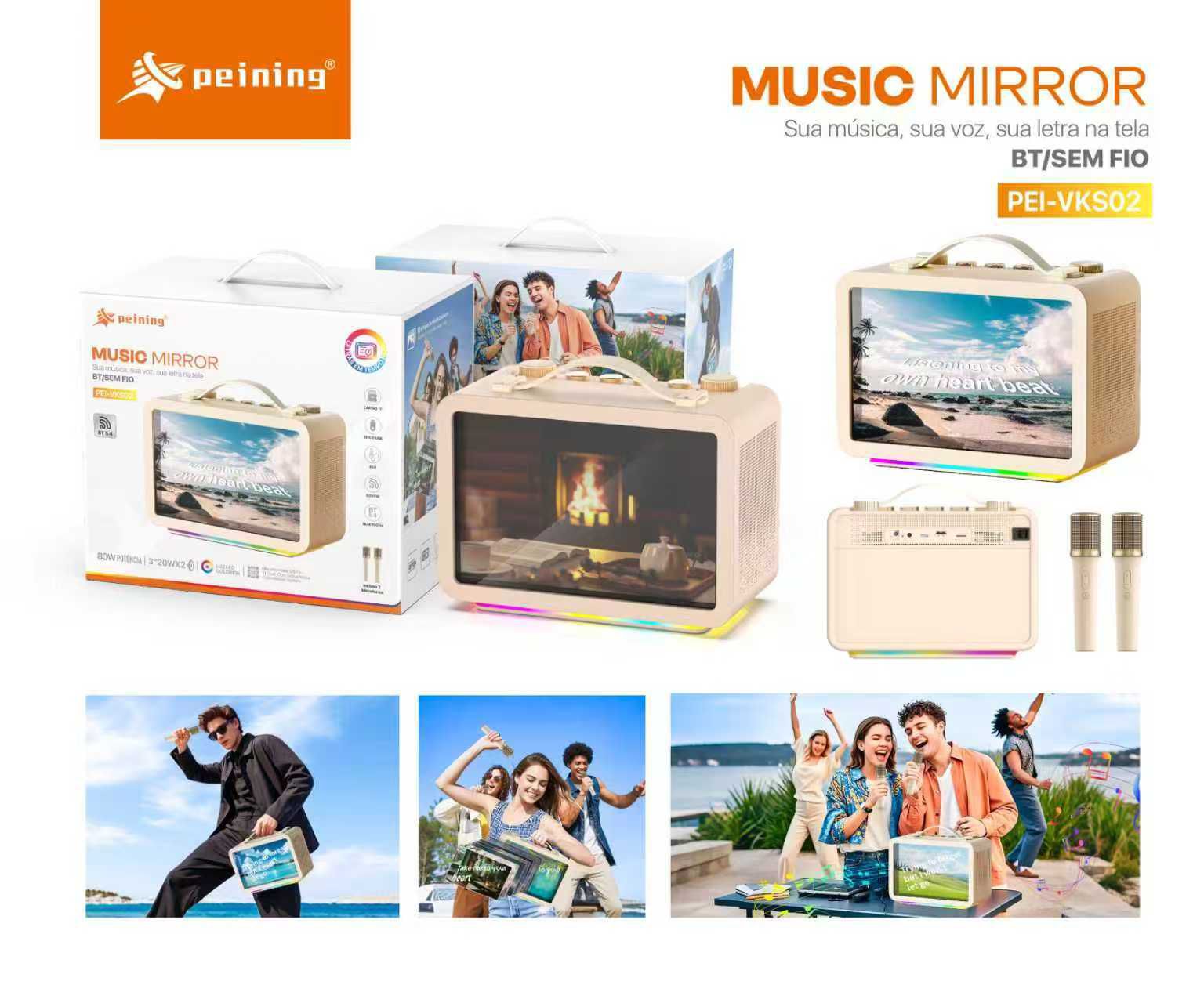 Caixa De Som Bluetooth com Karaoke Com Tela Peining PEI-VKS02 2 Microfone Sem Fio 80w