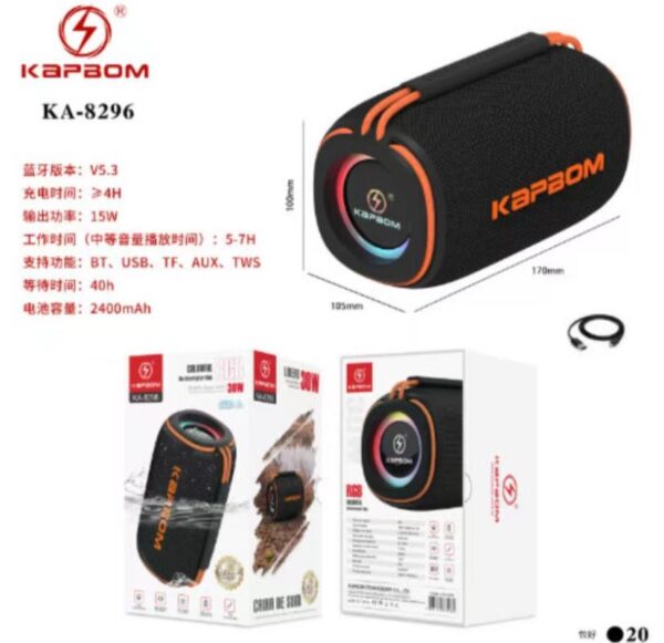 Caixa De Som Bluetooth Kapbom KA-8296 30w 17cm