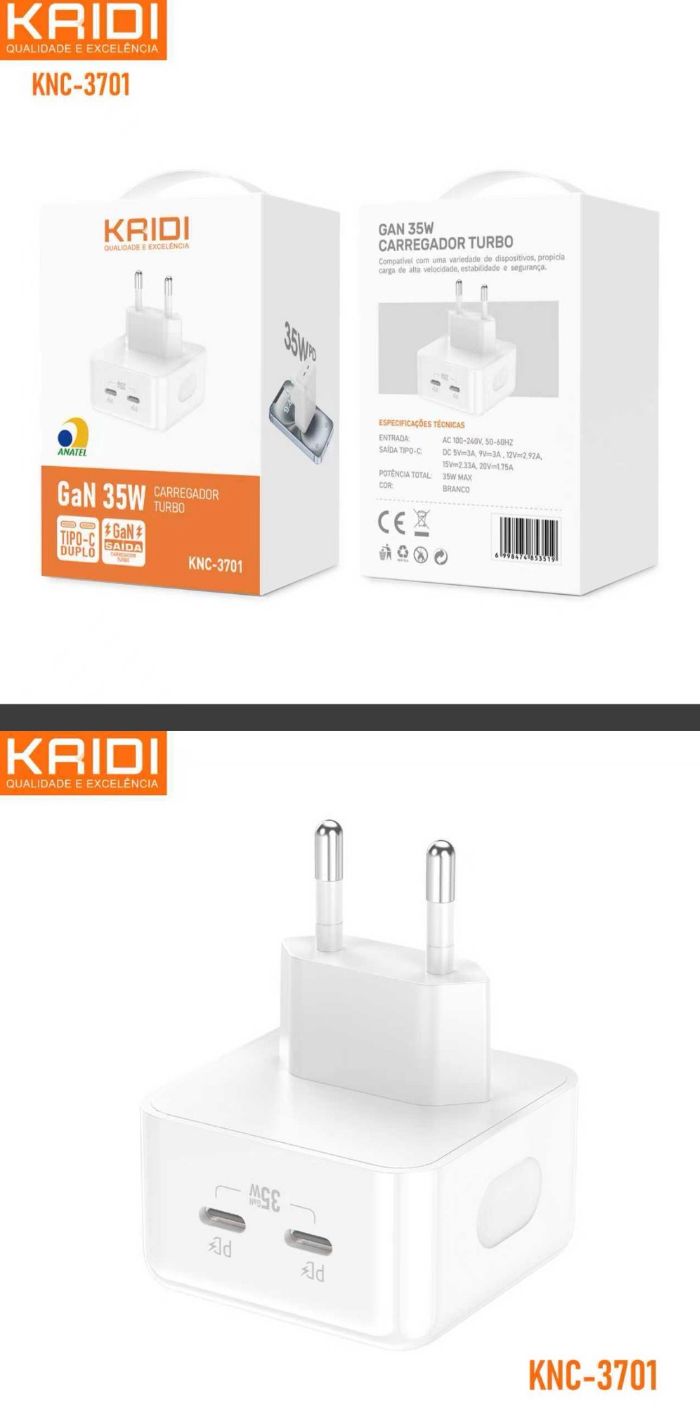 Carregador Fonte Kaidi Duplo Tipo C 35w KNC-3701