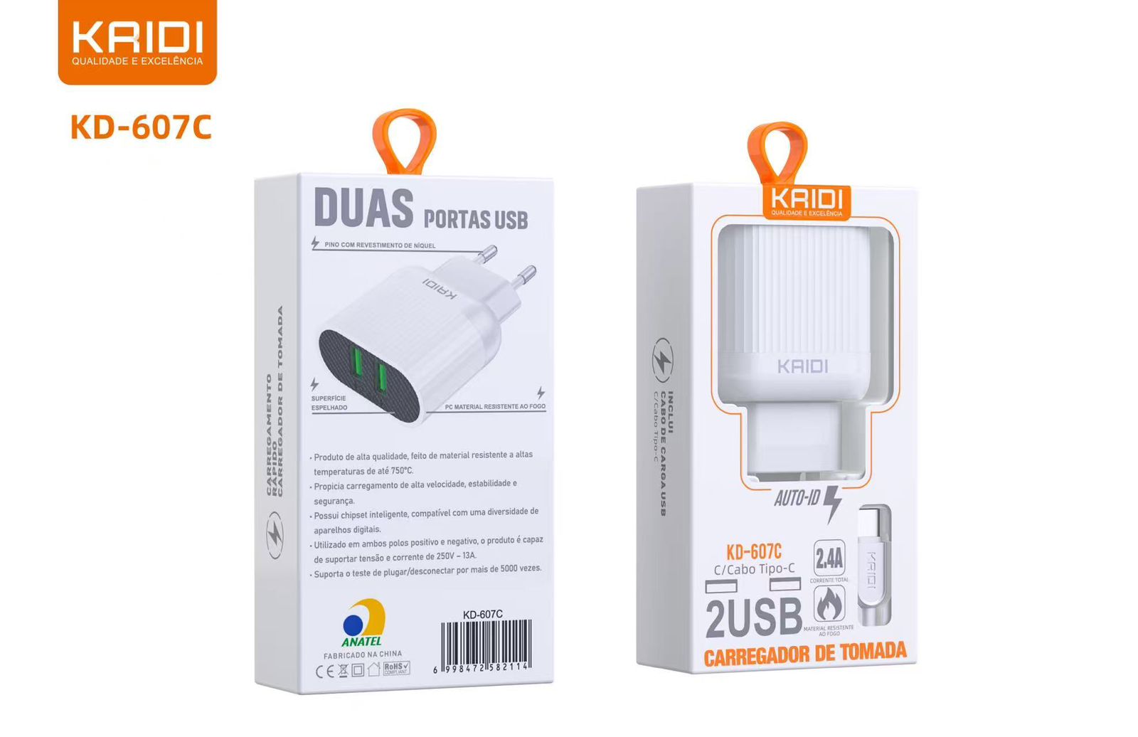 Carregador KAIDI 607C Type C 2.4A 2USB