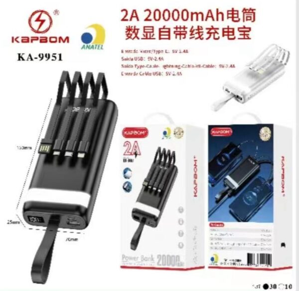 Carregador Portatil Kapbom KA-9951 20000mah com Cabos