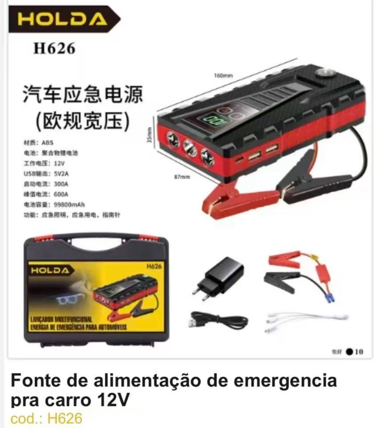 Fonte De Alimentacao de Emergencia para Carro 12v HOLDA H626