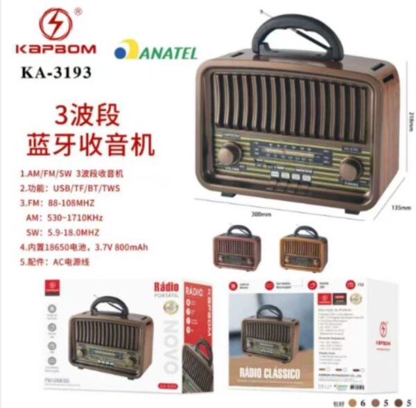 Radio Retro Bluetooth Usb AM/FM Kapbom KA-3193