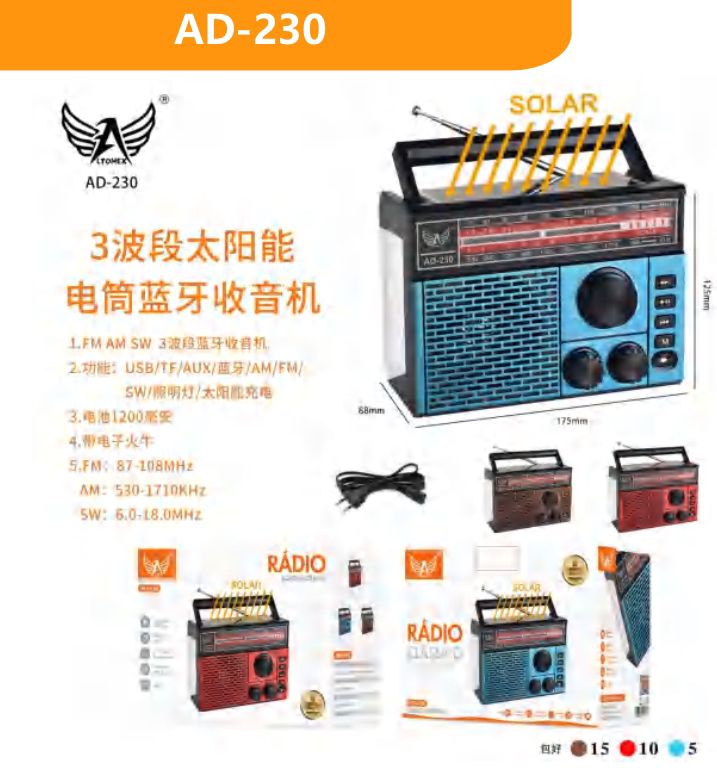 Radio Retro Solar Altomex AD-230 Com Bluetooth x-bass FM/AM